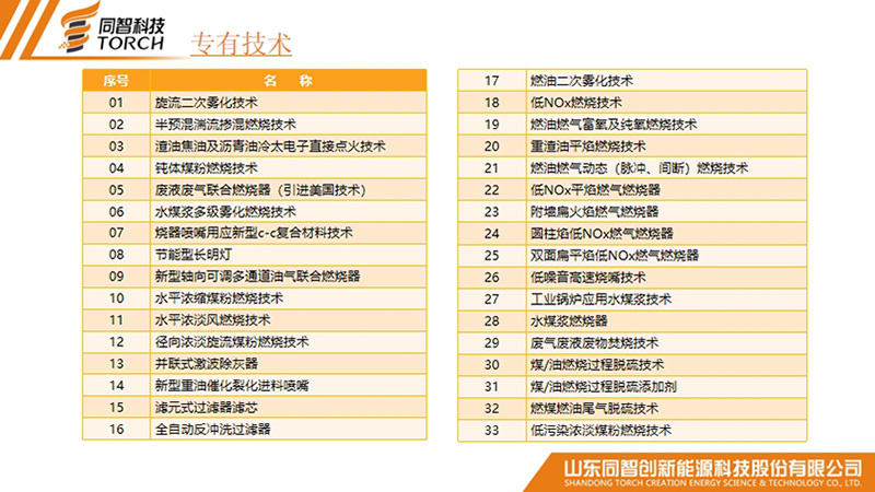 超低氮燃燒技術、 富氧純氧燃燒工程技術、 廢液廢氣焚燒工程技術、 工業廢氣VOCs綜合治理技術、 火炬氣回收及工業火炬技術、 點火及摻燒技術、